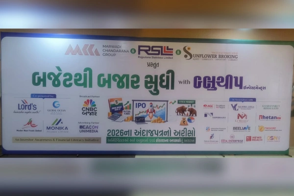 We were privileged to address the esteemed gathering at Blue-chip Investments’ flagship event, “બજેટથી બજાર સુધી” (From Budget to Market).